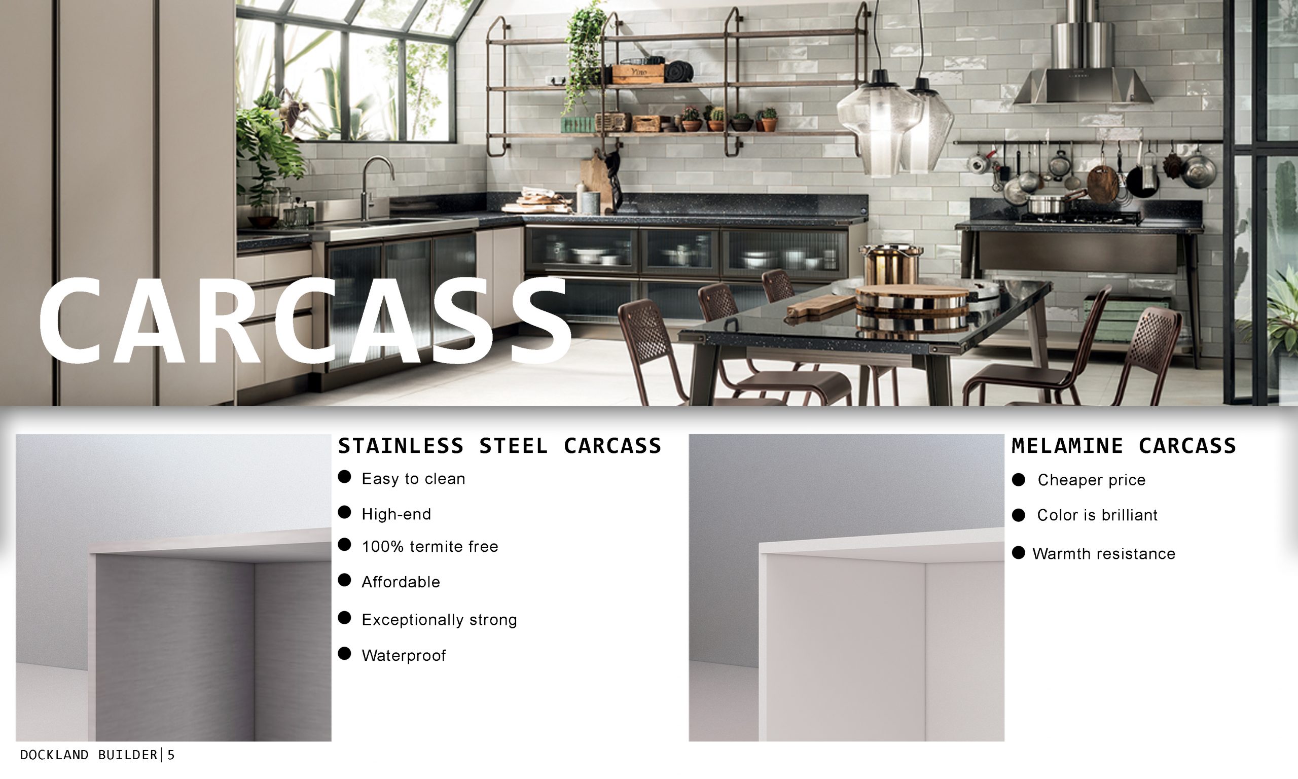 Made of stainless steel, and the kitchen cabinets and countertops are integrated, and there will never cracks or cracks.